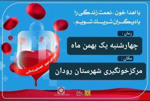 علاقمندان و مردم نوعدوست برای اهدای خون خود میتوانند در ساعت تعیین شده با همراه داشتن کارت ملی به مرکز مراجعه کنند.