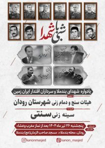 یادواره شهداء محله بندملاء و سرداران اقتدار ایران زمین ۲۶تیرماه در مسجد صاحب‌الزمان(عج) این محله برگزار می‌شود